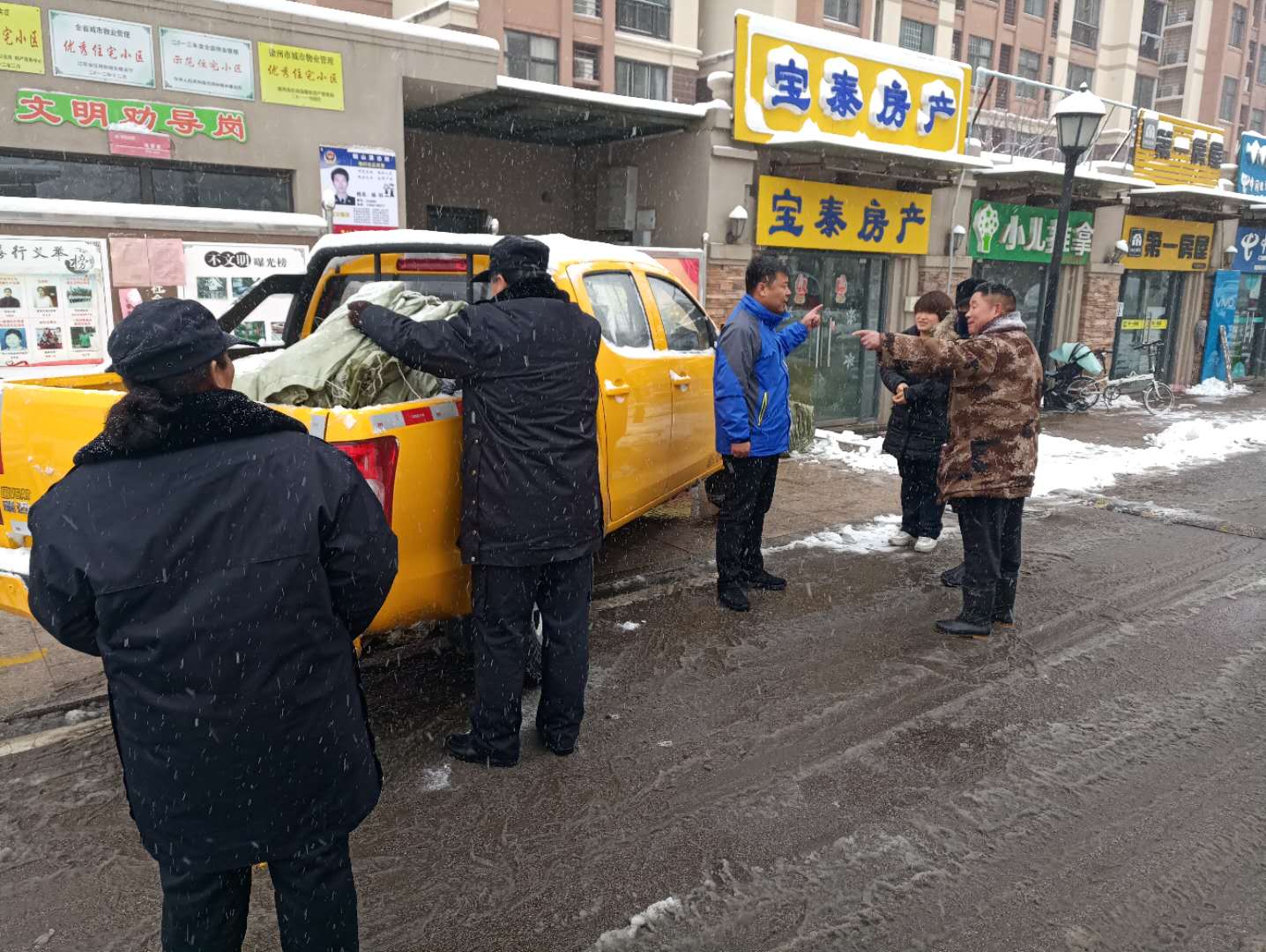 工作人員走進(jìn)居民小區(qū),鋪設(shè)防凍草墊
